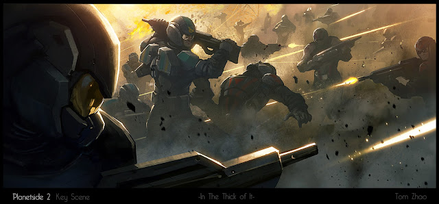 A couple of shots from the Planetside 2 trailer. Here are some of my first key scene paintings at Blur and learned a ton while doing these.